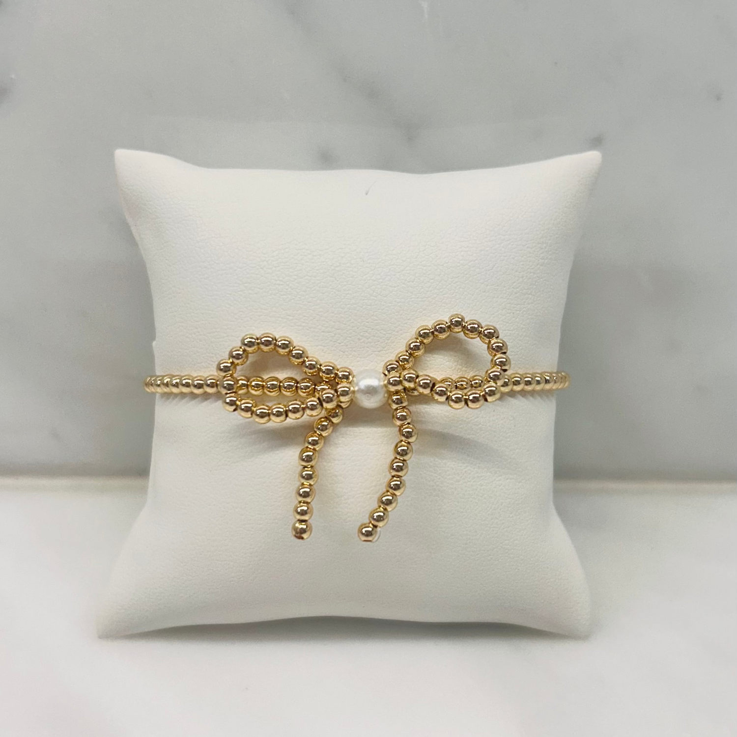 Our bow bracelets are our best sellers for a reason—they were the very first designs we ever made, and the piece that inspired us to start this business. Available in mini and regular sizes (shown: mini bow), they’re 14k gold plated and designed to be effortlessly layered and stacked. Timeless, meaningful, and made to shine every day.