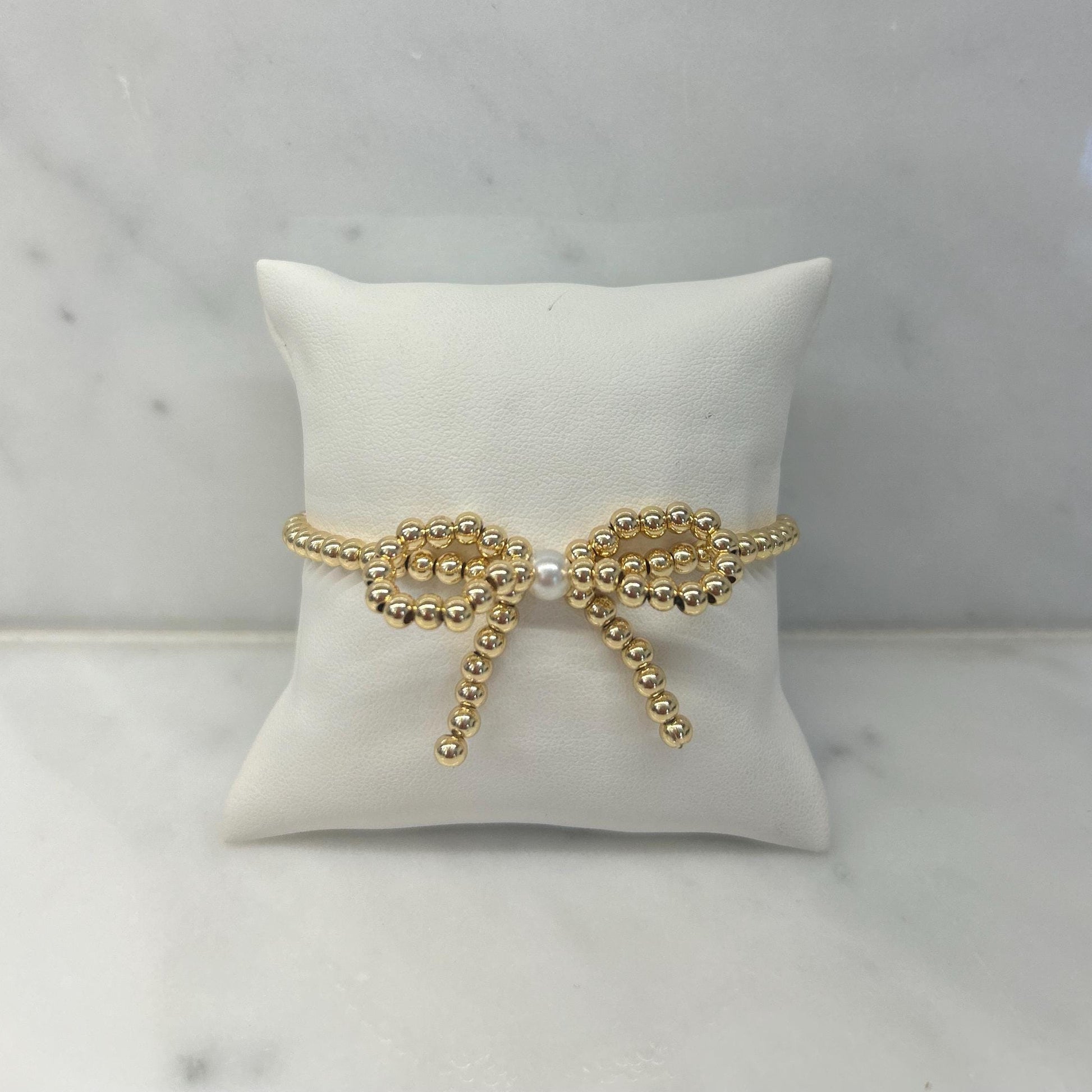 4mm 14k Gold Plated Brass Beads with a pearl on stretchy string.