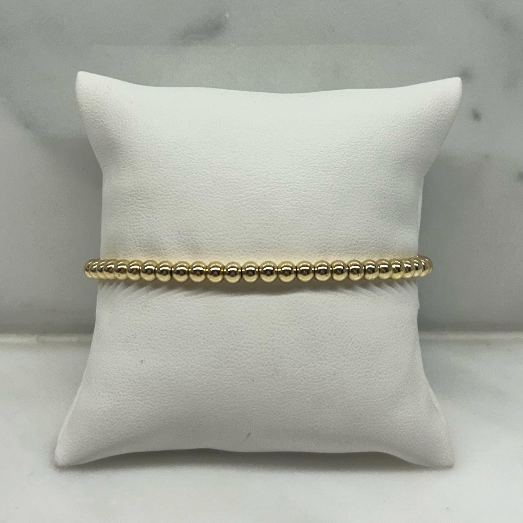 4mm 14k Gold Plated Brass Beads on stretchy string.