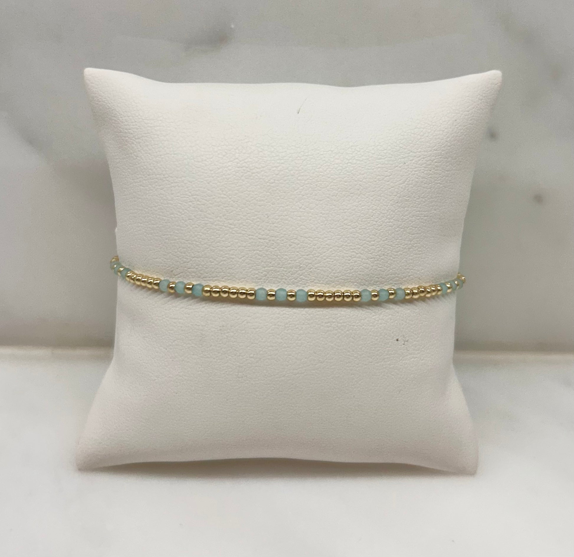 The Amalfi Bracelet features delicate 14k gold-plated beads accented with soft porcelain beads in a serene mix of pastel tones. Inspired by the effortless beauty of the Amalfi Coast, its balanced design brings a subtle hint of color while remaining timeless and wearable.