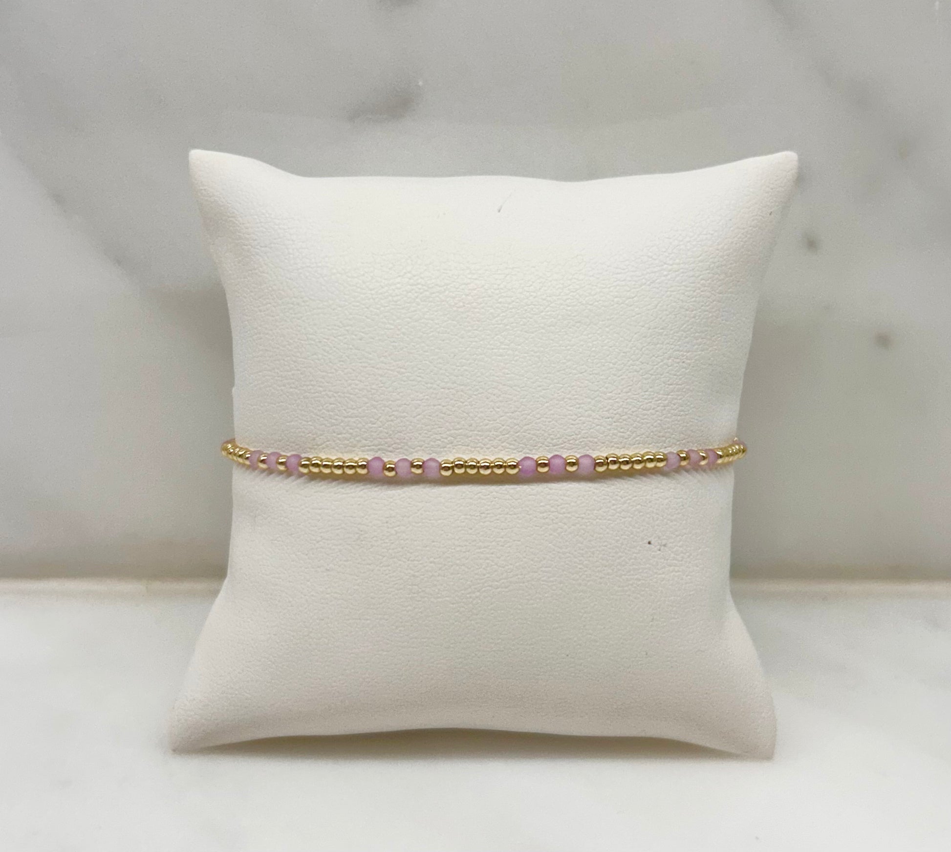 The Amalfi Bracelet features delicate 14k gold-plated beads accented with soft porcelain beads in a serene mix of pastel tones. Inspired by the effortless beauty of the Amalfi Coast, its balanced design brings a subtle hint of color while remaining timeless and wearable.