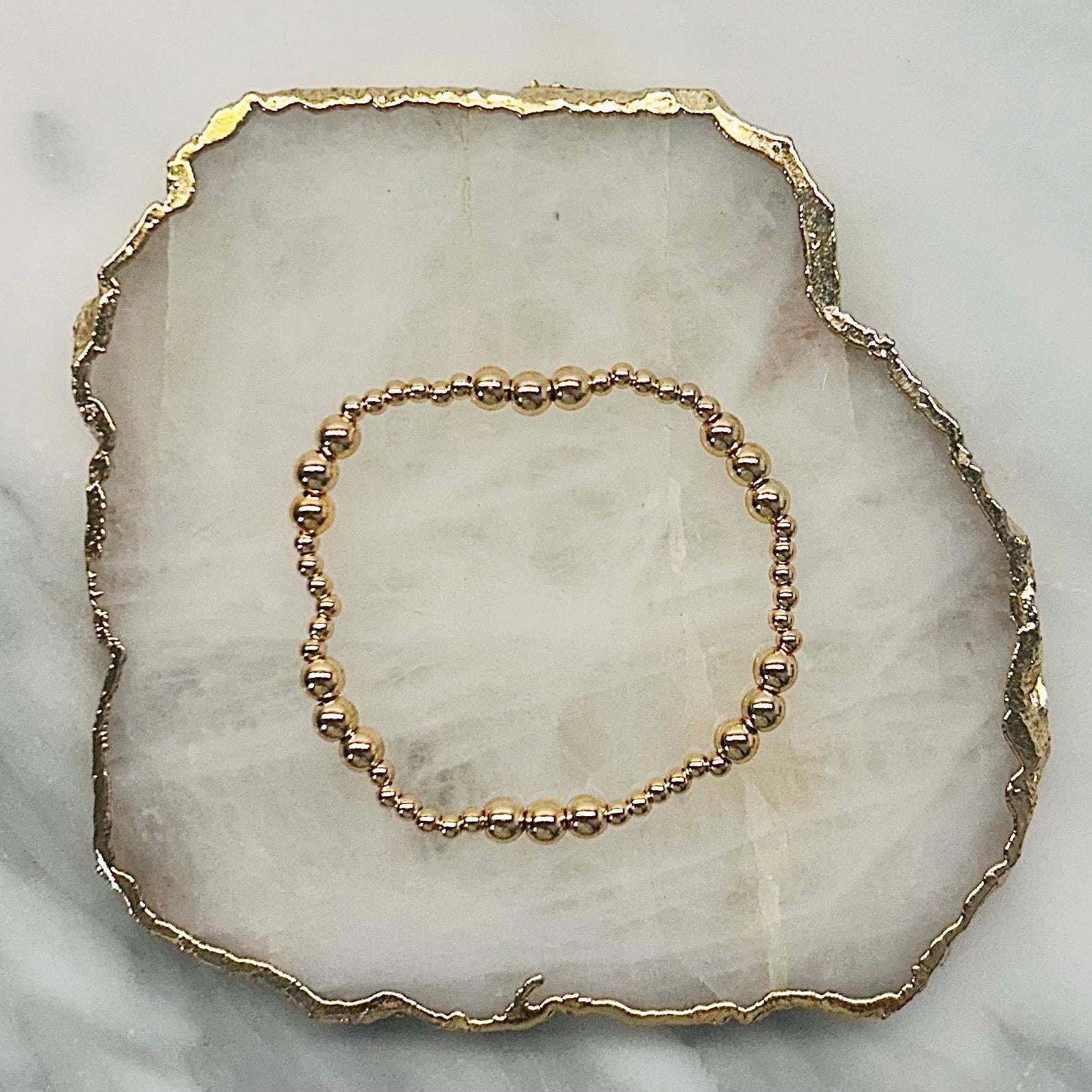 Effortlessly elegant, the Bella Vita Bracelet is designed to celebrate everyday beauty. Crafted with smooth, high-shine 14K gold plated beads, this timeless piece offers a refined balance of simplicity and sophistication. Its minimalist silhouette makes it perfect for layering or wearing alone as a subtle statement.