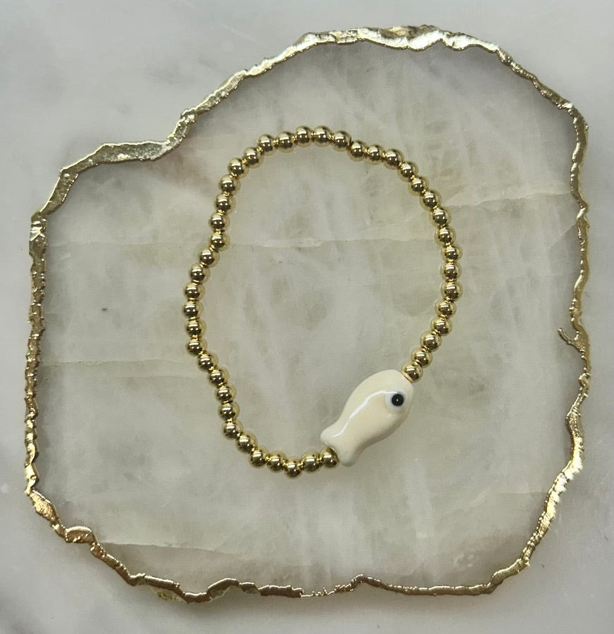 Designed to be worn alone or layered, it offers a fresh take on a classic beaded bracelet—eye-catching yet easy to style. Thoughtful, distinctive, and effortlessly wearable, the Fish Bracelet adds just the right touch of personality to your look.